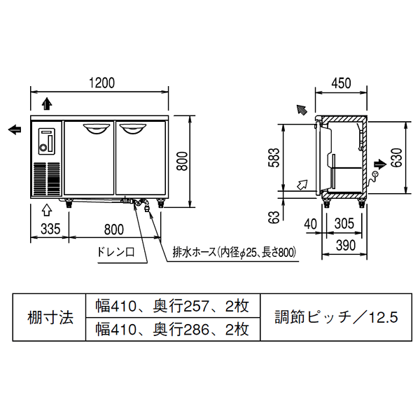 新品:パナソニック テーブル型冷蔵庫 ( コールドテーブル ) SUC-N1241J 174リットル幅1200×奥行450×高さ800(mm)【 台下冷蔵庫 】【 業務用厨房機器 】