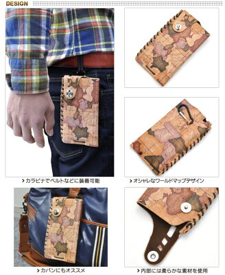 オシャレにスマートフォンを持ち歩ける!スマートフォン汎用ポーチ!(シザーケース・ウエストバッグ ) ■抜群の携帯性!汎用スマートフォン用ポーチ! カラビナでベルトやカバンに装着可能なスマートフォン用ベルトポーチ!スマートフォンが入る丁度良い大きさで、オシャレにスマートフォンを持ち歩くことができます ■各種スマートフォン対応! 汎用タイプなので、各種スマートフォンに対応! iPhoneからGALAXY、 Xperia 、HTC J、ARROWS など幅広く収納可能!また大型タイプなのでXperia Z1やHTC J butterfly、GALAXY S4なども収納できます! ■オシャレなワールドマップデザイン! レトロな世界地図デザインを採用! カジュアルなデザイン、カラーリングは男女問わずに使えます。