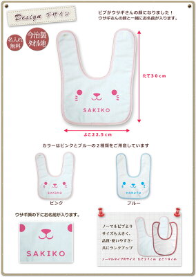 出産祝い 名入れ 名前入り プレゼント 男の子 女の子 ビブ スタイ >>> メール便についての詳しい説明はこちら <<<人気の名入れ今治製タオル生地のビブ・スタイ!動物シリーズ「うさぎ」のスタイです。