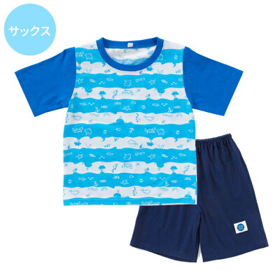 サイズ 男児サイズの目安(ヌード寸法(cm)) 身長/100=95〜105、110=105〜115、120=115〜125 胴囲/100=47〜53、110=49〜55、120=51〜57 仕上がり寸法(cm) 着丈/100=39、110=43、120=47 袖丈/100=15.5、110=16.5、120=17.5 パンツ丈/100=36、110=38、120=40 股下/100=14、110=15、120=16 カラー サックス、ブルー 素材 天竺(綿100%)、リブ部分(綿95%、ポリウレタン5%)、伸縮性あり 仕様 上衣/かぶり式、首ぐりリブ、半袖 パンツ/ウエスト総ゴム(ゴム取替口有)、前表示タグあり、ハーフパンツ 生産国 中国製 インフォ 夏だ!海だー! 夏にピッタリな海柄ボーダーパジャマが登場! ただのボーダーかと思いきや…?海の生き物が沢山プリントされた楽しいパジャマ。