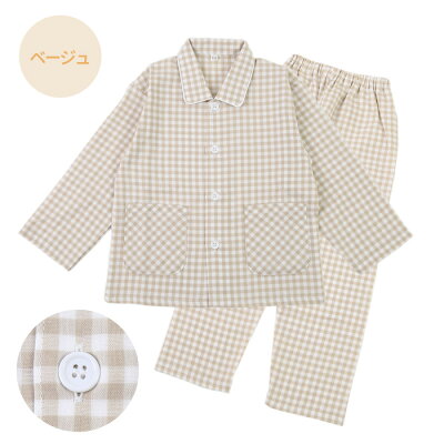 【日本製】 パジャマ キッズ 2重ガーゼ 綿100% 長袖 ギンガムチェック ★再入荷★ [ 男児 男の子 子供 100cm 110cm 120cm 130cm 140cm 150cm 160cm 春 秋 夏 小学生 中学生 誕生日 入院 前開き シャツパジャマ コットン 寝巻き カイタック ファミリー ]