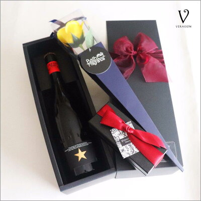 【4日20時より当店限定P5倍 父の日 ビール ギフト】チョコレート 花 セット お歳暮 ビール ギフト 送料無料 冷蔵便【プレミアム ビール イネディット 750ml 1本×ソープフラワー1輪×ボンボンショコラチョコレート 3個入:パッション/タンザニア/メキシック リボン包装】