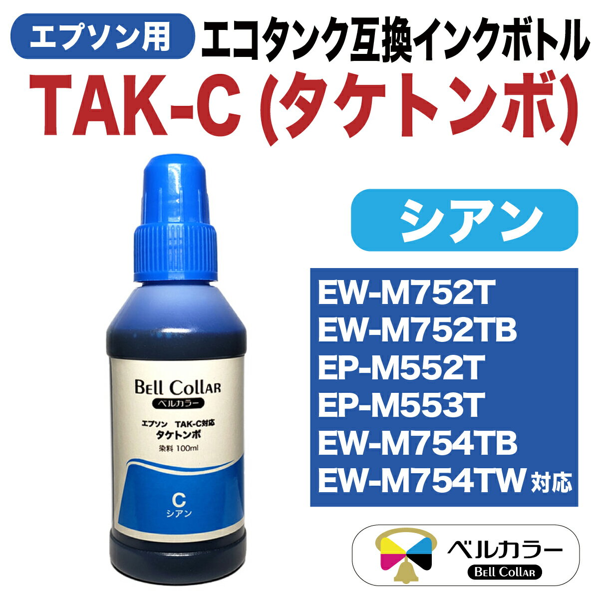3年保証 エプソン 互換 エコタンク TAK-C タケトンボ 対応 EW-M752T / EW-M752TB / EP-M552T 互換 インクボトル 100ml 単品 ( フォトブラック/シアン/マゼンタ/イエローから選べる ) ベルカラー製