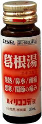 成分・分量 30ml中 カッコン湯エキス(乾燥)/1,700mg (葛根2.472g、麻黄1.236g、大棗1.236g、桂皮0.928g、芍薬0.928g、甘草0.618g、生姜0.310g)の混合生薬よりエキス1,700mg を得る アセトアミノフェン/314mg クロルフェニラミンマレイン酸塩/4mg カフェイン水和物/40mg 添加物として、白糖、D−ソルビトール、エタノール、安息香酸Na、パラベン、香料を含有します。