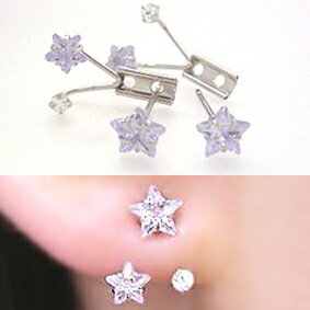 耳につけると・・? バックピアスは耳たぶにぴったりそうカーブで、 まるで、星が耳にそのまま浮かんでいるみたい・・! キラキラと光を反射するラベンダーキュービックなら モチーフでもこどもっぽくなりすぎません! バックピアスは、2段階に調整できますよ。