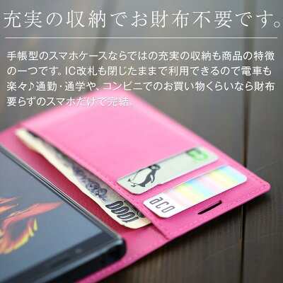 手帳型のスマホケースならではの充実の収納も商品の特徴の一つです。