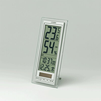 シチズン CITIZEN リズム時計 8RD204-A19 高精度デジタル温湿度計付き 置き時計 室内環境注意報 ソーラー電源 置時計 シルバー